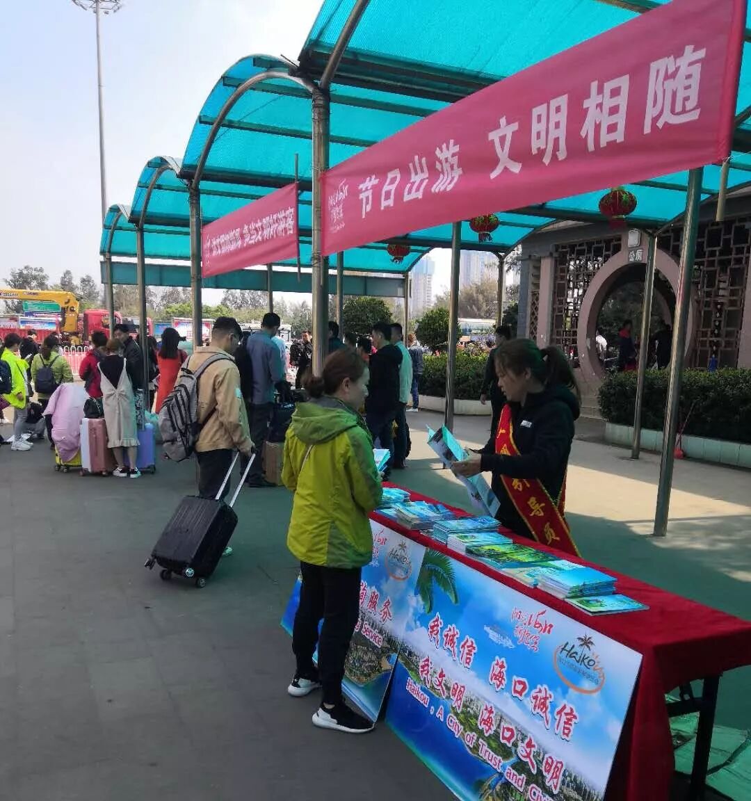 海南省海口市旅行社协会已经连续5年在游客进出海口的码头、火车站、机场等交通枢纽开展志愿服务。今年春节期间,志愿者们像往年一样,从早八点半到晚六点不间断地为进出岛游客提供咨询服务,开展文明引导。