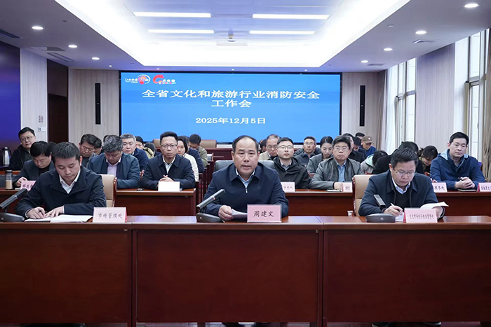 12月5日,省文化和旅游厅组织召开全省文化和旅游行业消防安全工作会,深入学习贯彻习近平总书记关于安全生产和防灾减灾救灾的重要论述及对香港“11・26”火灾事故的重要指示精神,全面落实省委省政府和文旅部最新工作要求和全省高层建筑重大火灾风险隐患排查整治行动动员部署会精神,对全省文旅行业消防安全生产工作进行再部署、再强化、再落实。省文化和旅游厅党组成员、副厅长周建文出席会议并讲话。